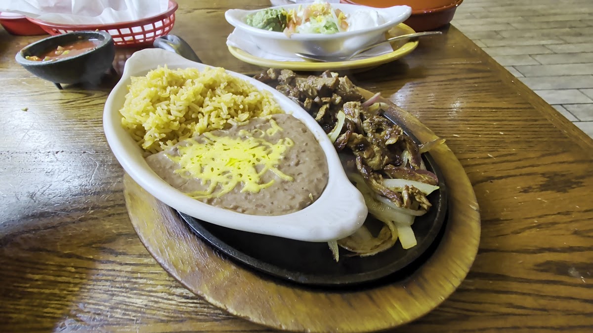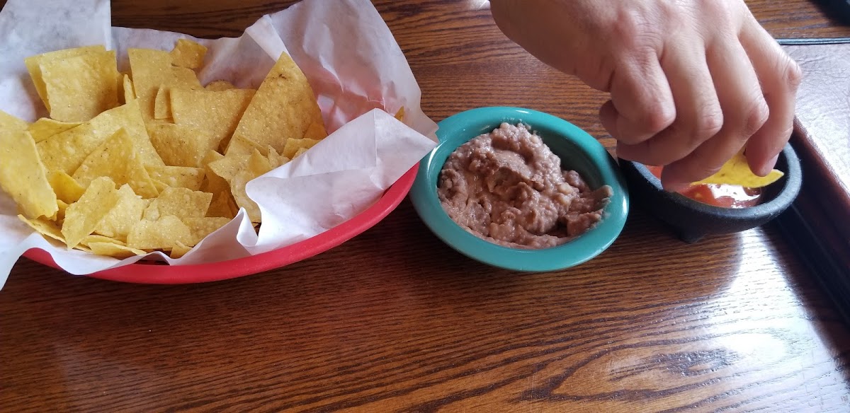 Fast and friendly service. The upholstery on the seats could be updated the current benches do have some rips and tears. The food is not authentic Mexican food it is Tex-mex. Portion sizes where normal the bean dip was a nice addition with chips and salsa.